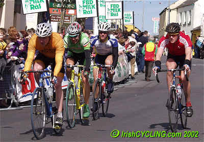 More IrishCycling.Com pages - | Home | Road | Leisure | MTB | Stokes | Cromwell | Events | Ask Cass | Junior Tour | Pictures | Race Reports | Morgan's Diary | Other | Design | Disclaimer | About | - updated 27 May 2002 |