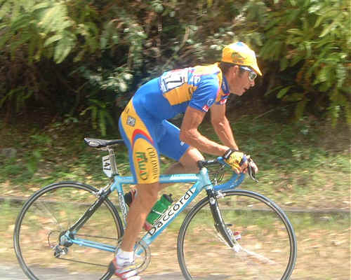 Alviero Marin Columbia-Selle Italia leads up the early slopes of the 25km
